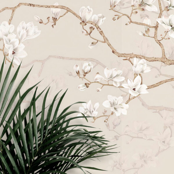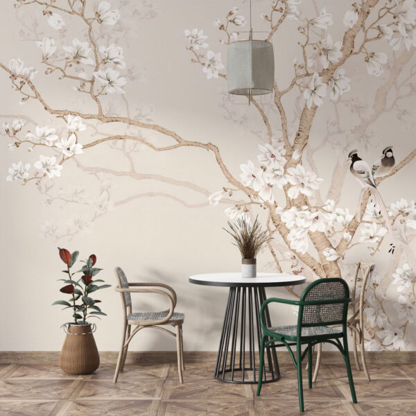 Chinoiserie Trees and Flowers Pastel Color Background Wall Mural Background Peel and Stick, Mural, Vintage Art, Home Design