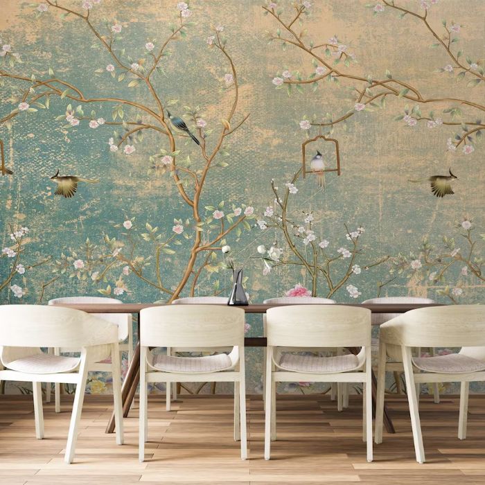Vintage Chinoiserie Wallpaper with Birds floral ancient Wallpaper, non-woven wallpaper, peel and stick wallpaper