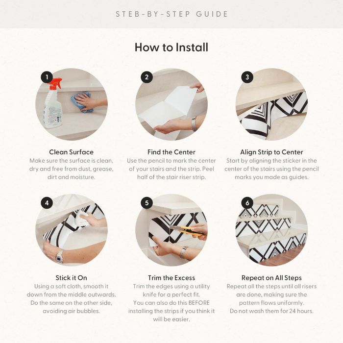 Stair risers can often be overlooked in the grand scheme of our home decor, but don’t let this unused sweet spot go to waste. This space can really make a big statement when given a little love and attention.You can easily add some dynamic visual interest with our peel & stick stair riser decals.