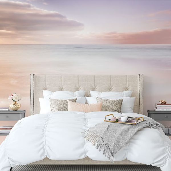 Seascape Mural Wallpaper Landscape, Pink Wallpaper, Peel and Stick Wallpaper Mural, Eclectic Wall Art, Self Adhesive Removable Wallpaper