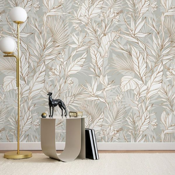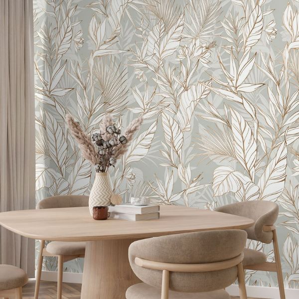 Soft Tropical Leaf Wallpaper Peel and Stick | Exotic Boho Leaves Wall Mural | Natural Leaf Wallpaper