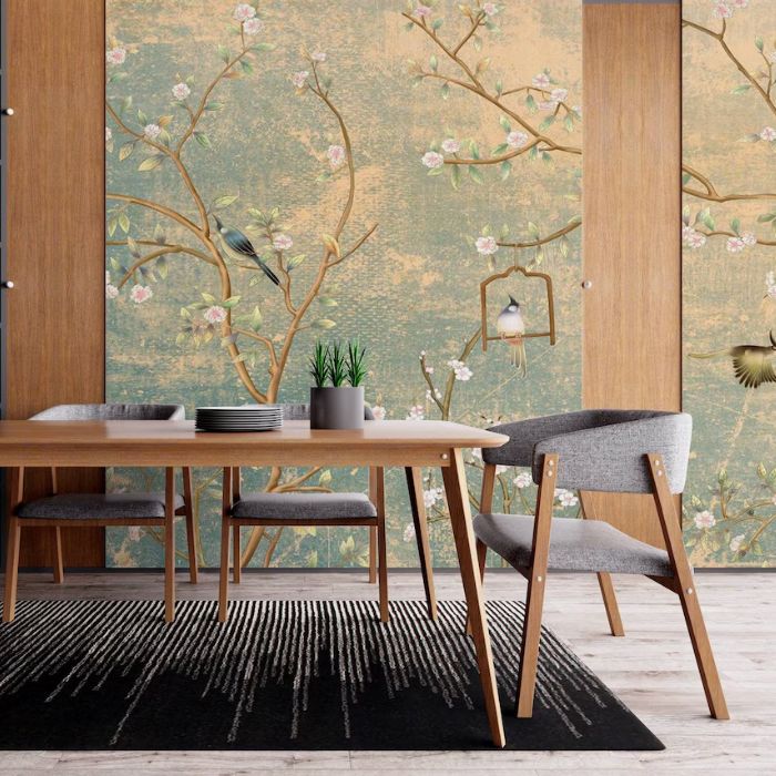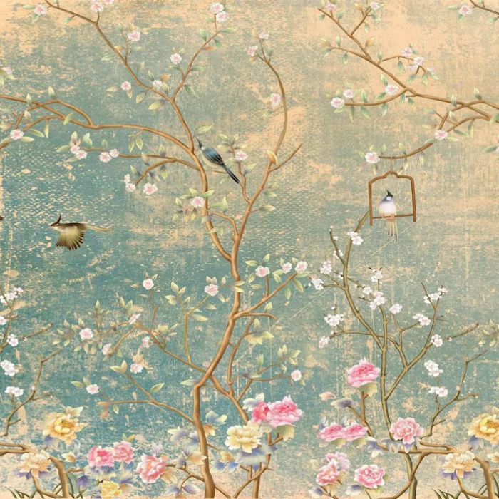 A Beautiful Vintage Chinoiserie Wallpaper with Birds floral in ancient style